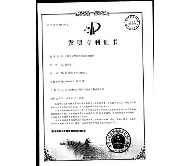 發(fā)明專利證書