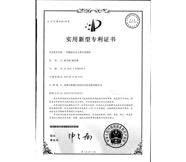 平彈片帽蓋機(jī)專利