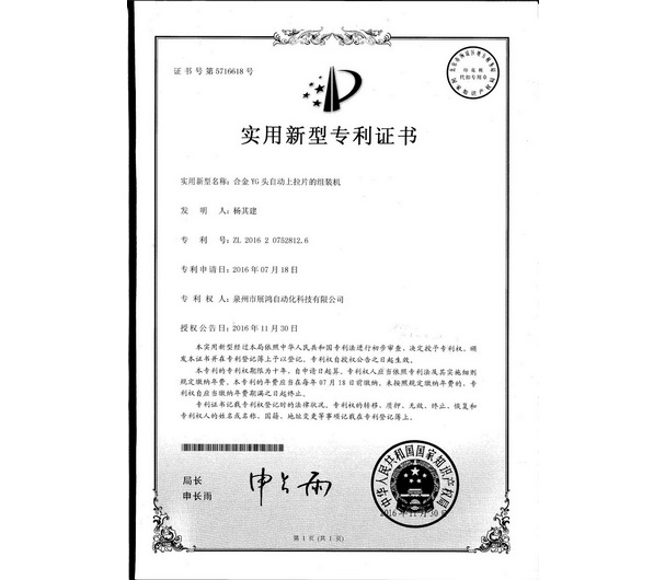 合金YG頭自動(dòng)上拉片的組裝機(jī)